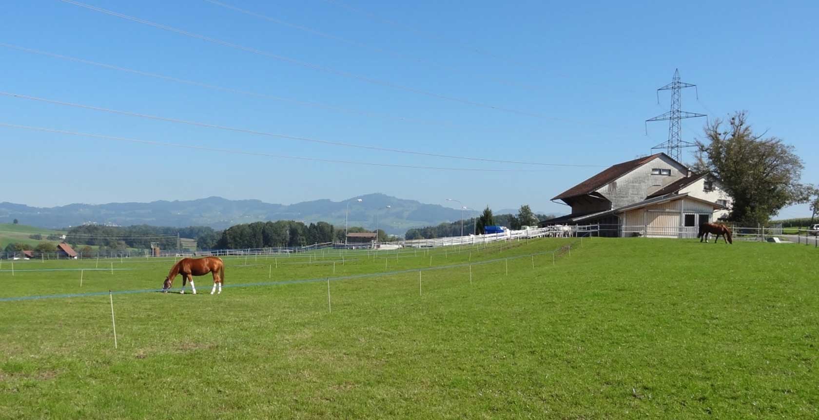 Rund um unsere Stallungen finden Sie viele Möglichkeiten für schöne lange Ausritte. Das Reitgebiet ist weitläufig und abwechslungsreich: Zahlreiche Kieswege und wenig verkehrsreiche Strassen erlauben spannende Rundritte. Ein Bad in der Jona oder entspanntes Reiten entlang des Egel- oder Zürichsee liegen ebenso drin wie ein Ausritt unter dem kühlen Blätterdach des Rütiwaldes. Erholung und beste Aussichten vom Pferderücken aus sind garantiert.